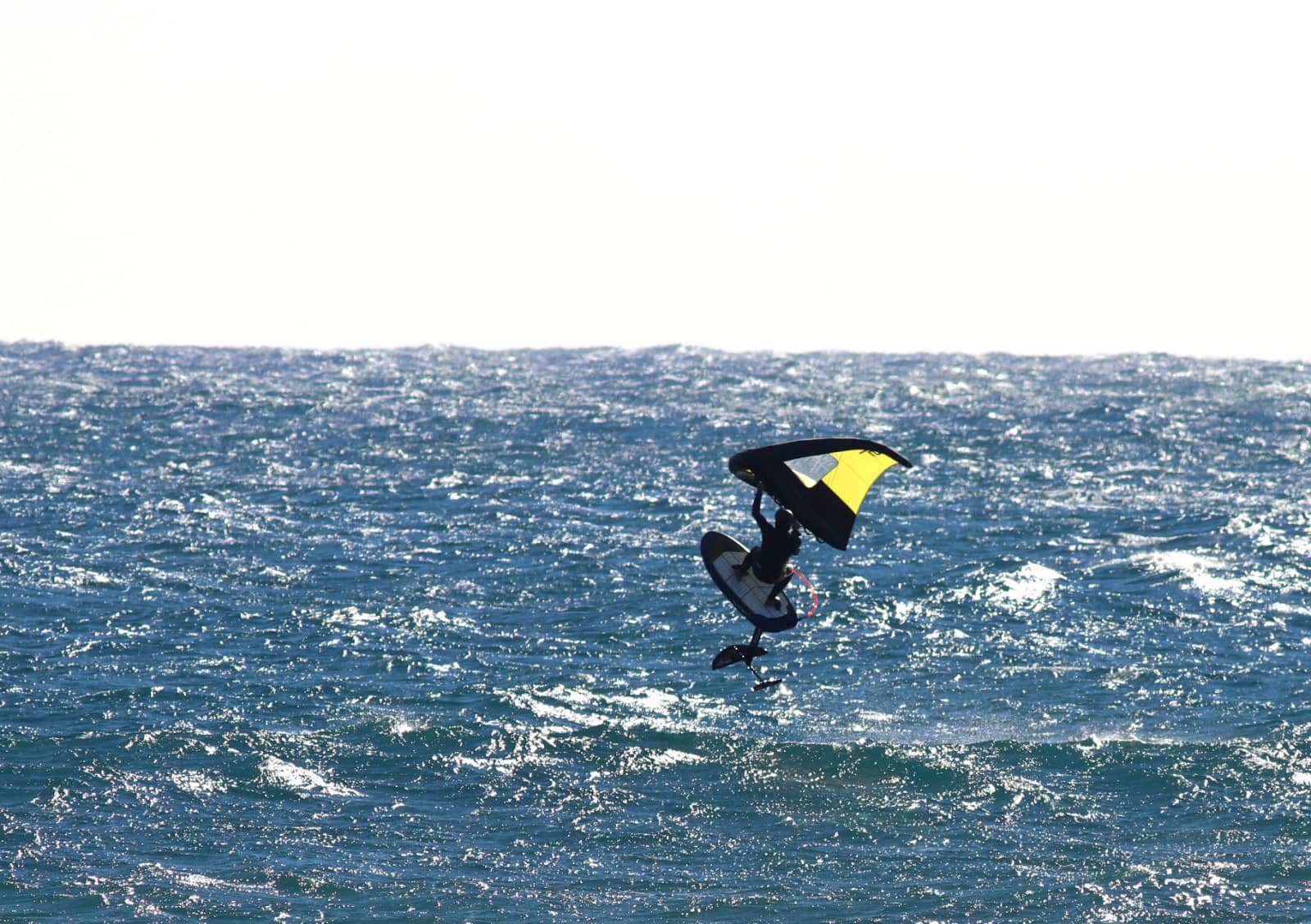 Above 30 knots the sea remains white. With Winfsurf or Kite, they are already tough sailing conditions. Any streak turns violent in the arms, hands and feet and the board and sail control often goes into survival mode. With Wingfoil this feeling changes. You continue to fly as smoothly as 15 knots. Yes, the streaks also the notes on the wing, but the fact of taking the leech to the limit of the devente makes it easier for you to control it.