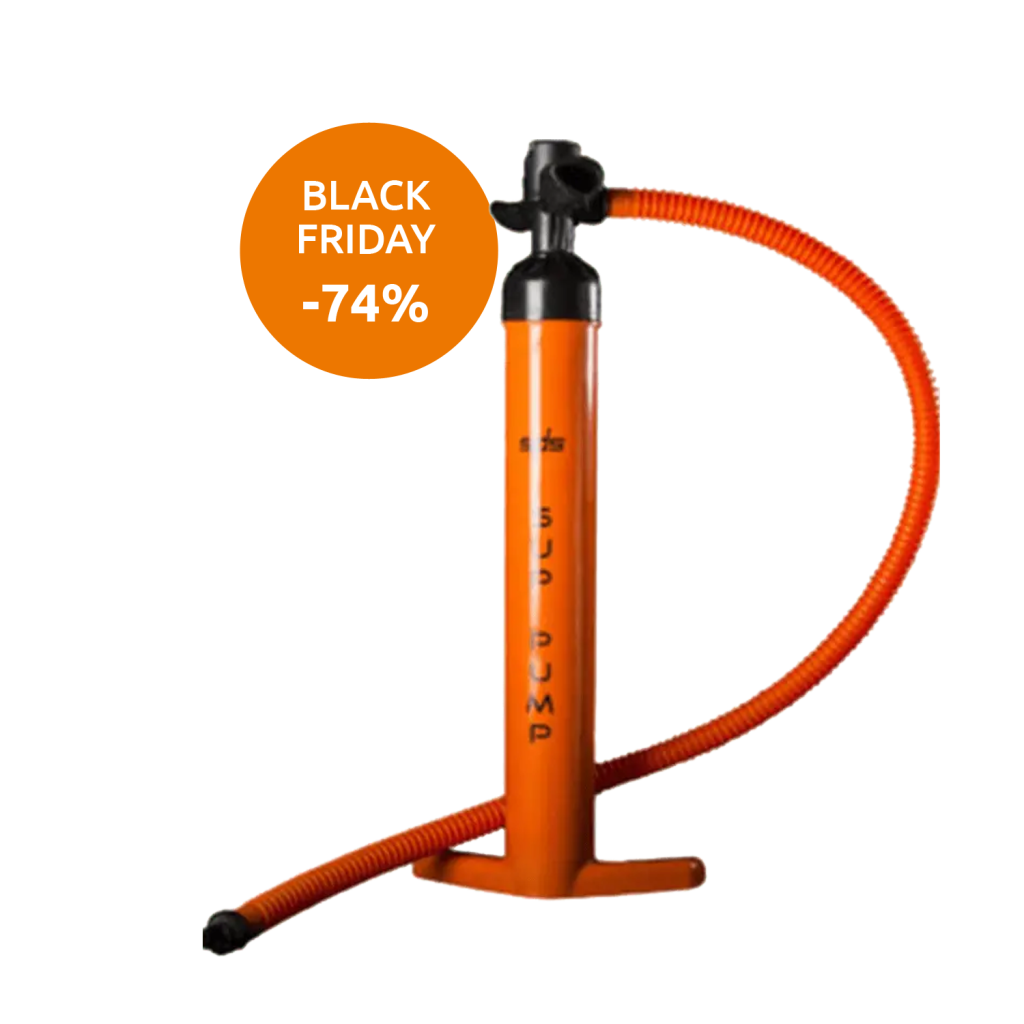 Hinchador de doble acción. Con este hinchador se acabó tardar 10 minutos en hinchar una tabla.